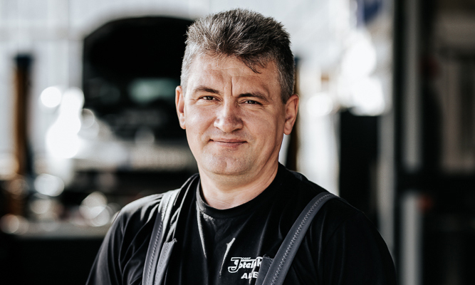 Junggebliebener Altgeselle. Steuerketten- & Zahnriemenprofi! Experte in „hör dir mal das Geräusch an“ sowie Unfallschäden-Spezi! Höchst gewissenhaft. Schon ewig an Board.