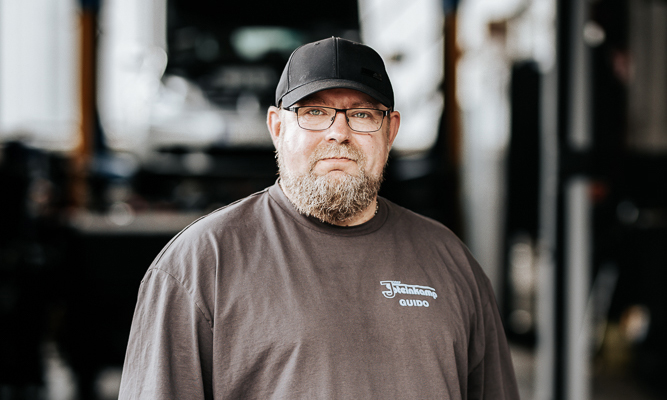 Richtiges Büro-Organisationstalent und frisch an Board. Er kennt nicht nur so gut wie alle Kunden beim Namen, sondern auch jedes Ersatzteil im Schlaf – und bereitet die Arbeit so vor, dass es läuft wie geschmiert. Lack ab? Guido hilft dir weiter! P.S.: Guido ohne Cap? Das ist wie Batman ohne Fledermaus – unvorstellbar.