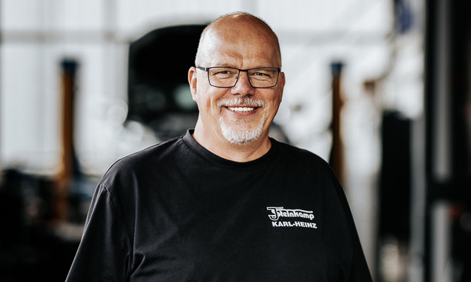 Ein Mann ein Wort! KFZ-Meister & Maschinenbau-Ingenieur. Aufgepasst: Fachkraft für Arbeitssicherheit! Verbindet das Team wie eine Schweißnaht. Superkraft: Geduld ohne Ende! Ist irgendwie wie die Jungfrau zum Kinde in den Betrieb gekommen – ungeplant, aber mit Happy End.